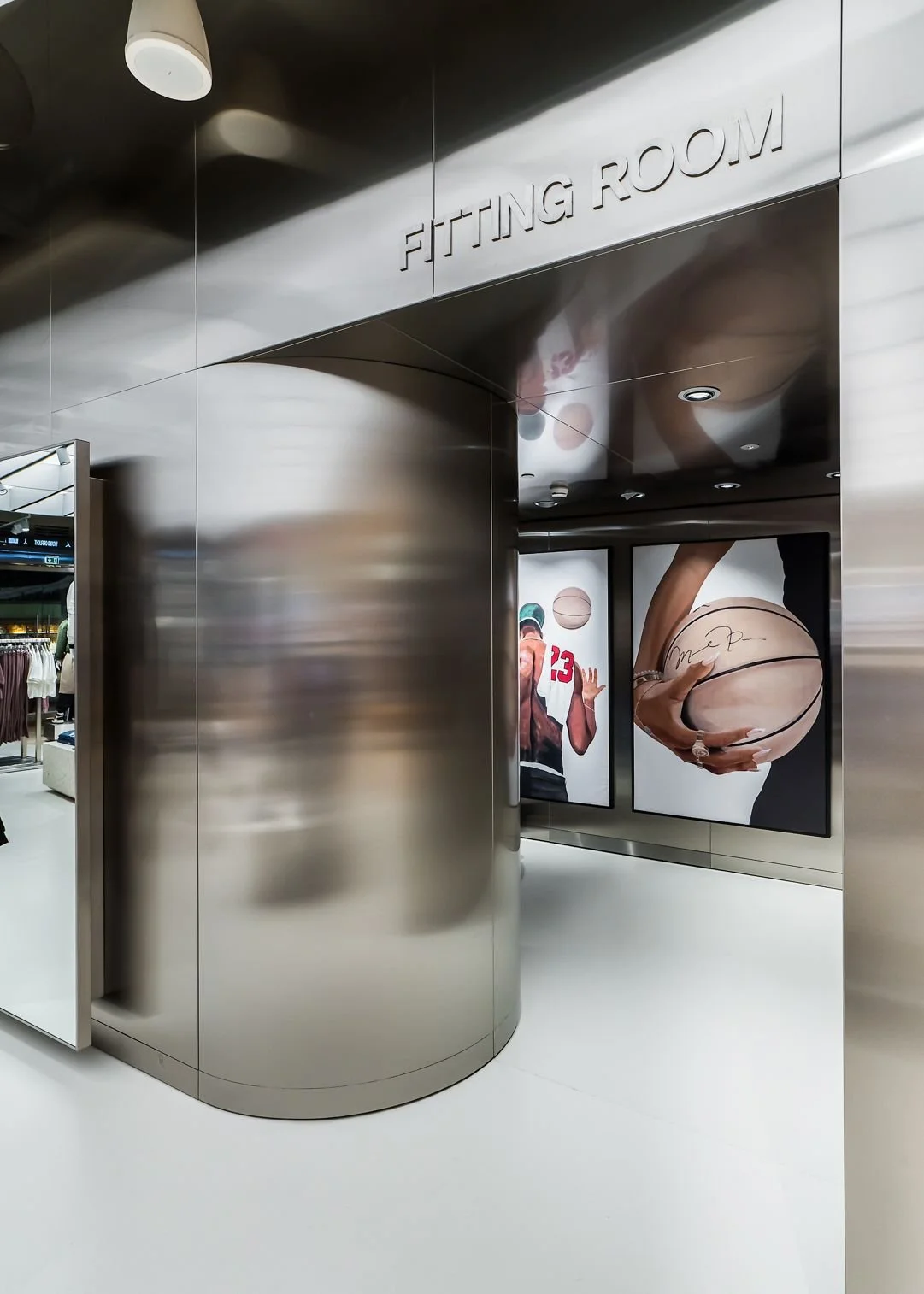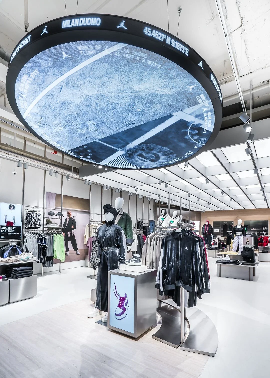 Jordan Milan debuts the World of Flight retail concept for Nike, Inc. The materials and interior reflect the Jordan Brand’s premium positioning. Design highlights include the centre court entrance, tributes to basketball culture, a customisation area, and the Flight Lounge.